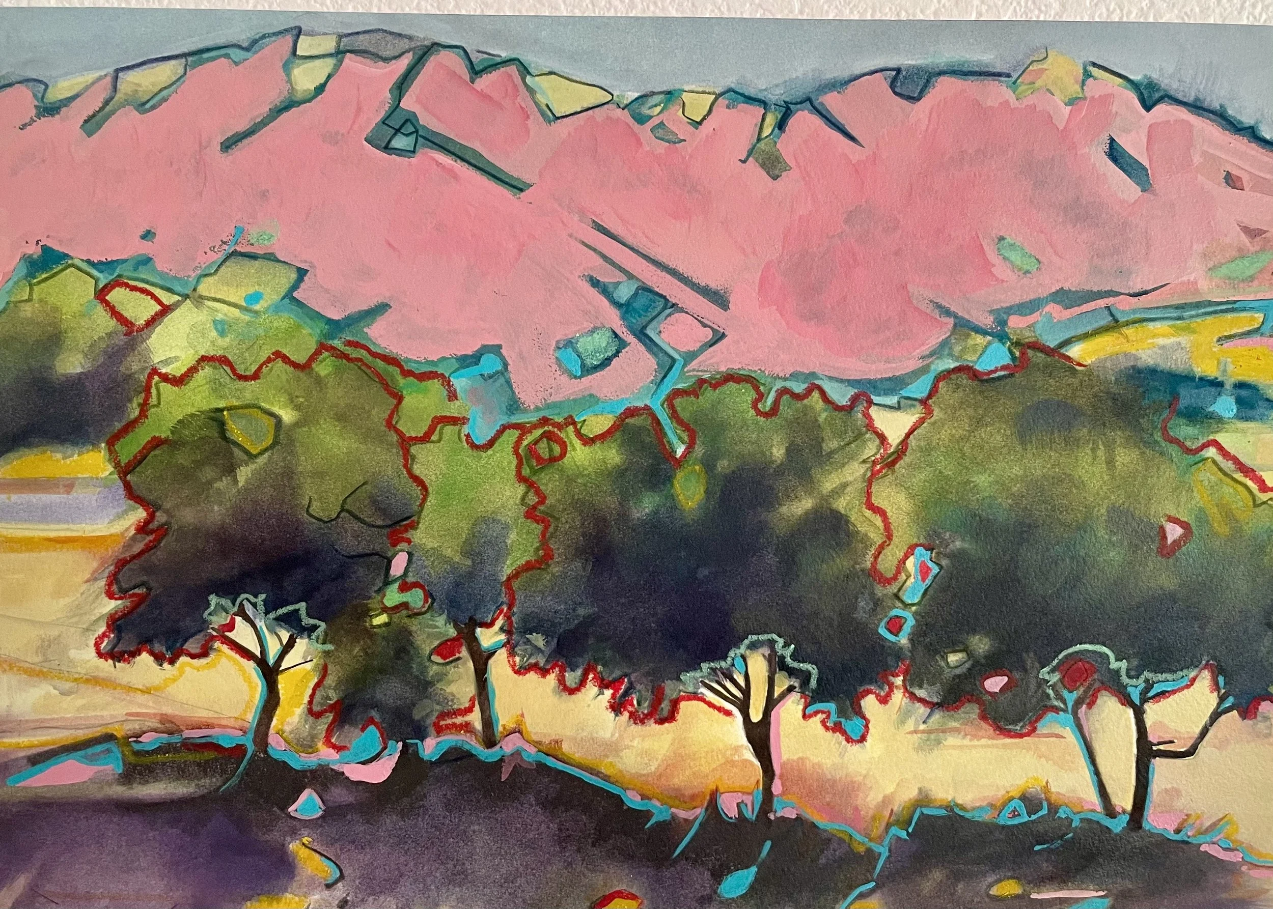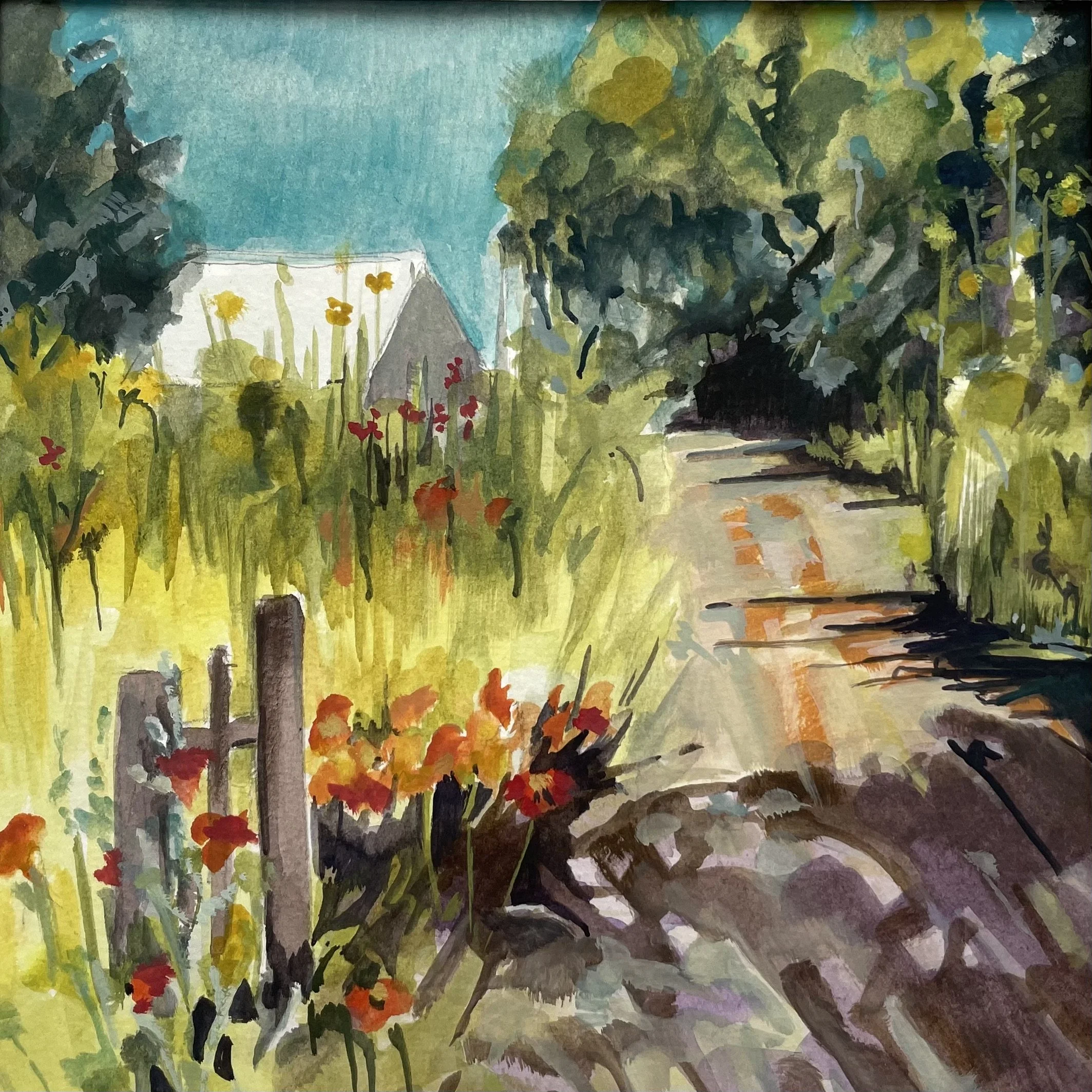 Summer Road acrylic and gouache on paper, framed